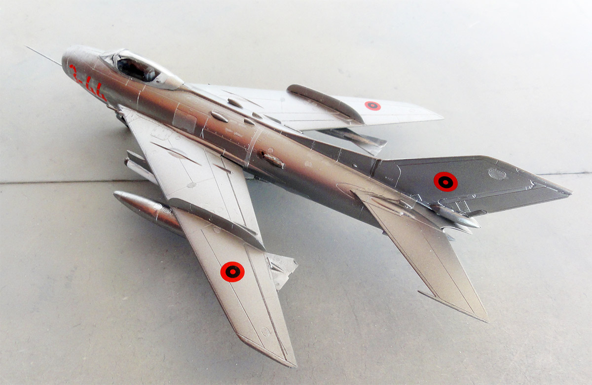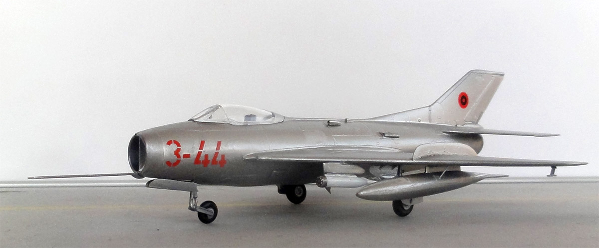 Another "New KP" 1/72 kit #0158 is for a MiG-19S with NATO code name "FARMER C". It was licensed built by Aero as S-105. ![]() Decals in this release are for 4 Czechoslovak Air Force MiG-19S jets flown during the Cold War. ![]() ![]() The parts are the same as in the first kit described above. The model was made in another scheme representating an Albania Shenyang F-6C. The kit has the same parts so can be made. Assembly was done similarly as for the F-6C above. ![]() The overall colour was airbrushed acrylic Vallejo Metal Color 77.724 "Silver" with some panel painted with the brush other Vallejo Metal paints. Sensure a gloss undercoat to get a nice shine. I simple airbrushed a gloss varnish before airbrushing the silver. Also airbrush smaller parts while still in their sprues. The external fuel tanks were also airbrushed. ![]() The 6 Albania roundels were found in the spares box as well as the red nose codes. On the vague real photos I could not really see stencils. ![]() Landing gear and external fuel tanks were installed. The rocket pods were also installed and again the canopy set closed. The model got a gloss varnish coat with Johnson Future (so do not add the flat base). That completed the model. ALBANIA . . .. .. ..